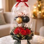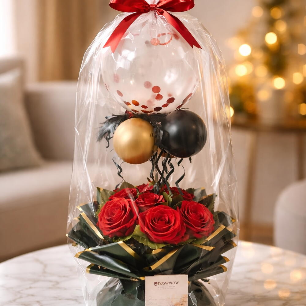 Globo con Base de Rosas y Globos Dorados | Arreglo Floral de Lujo balloons fansy