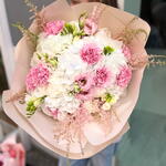Este hermoso ramo de flores de autor está compuesto por 8 unidades de encantadores claveles, 6 unidades de exquisitas hortensias y 4 unidades de lisantium. Pensado para aportar un toque exclusivo y personalizado a cualquier lugar, enamora a primera vista por su combinación única y su sofisticada elegancia. Ideal como regalo en cualquier ocasión o simplemente para darte un capricho lleno de color y belleza.