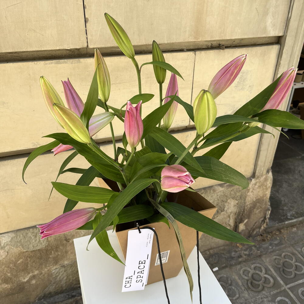 lirios orientales - 7 ud. Jarrón crystal - 1 ud.