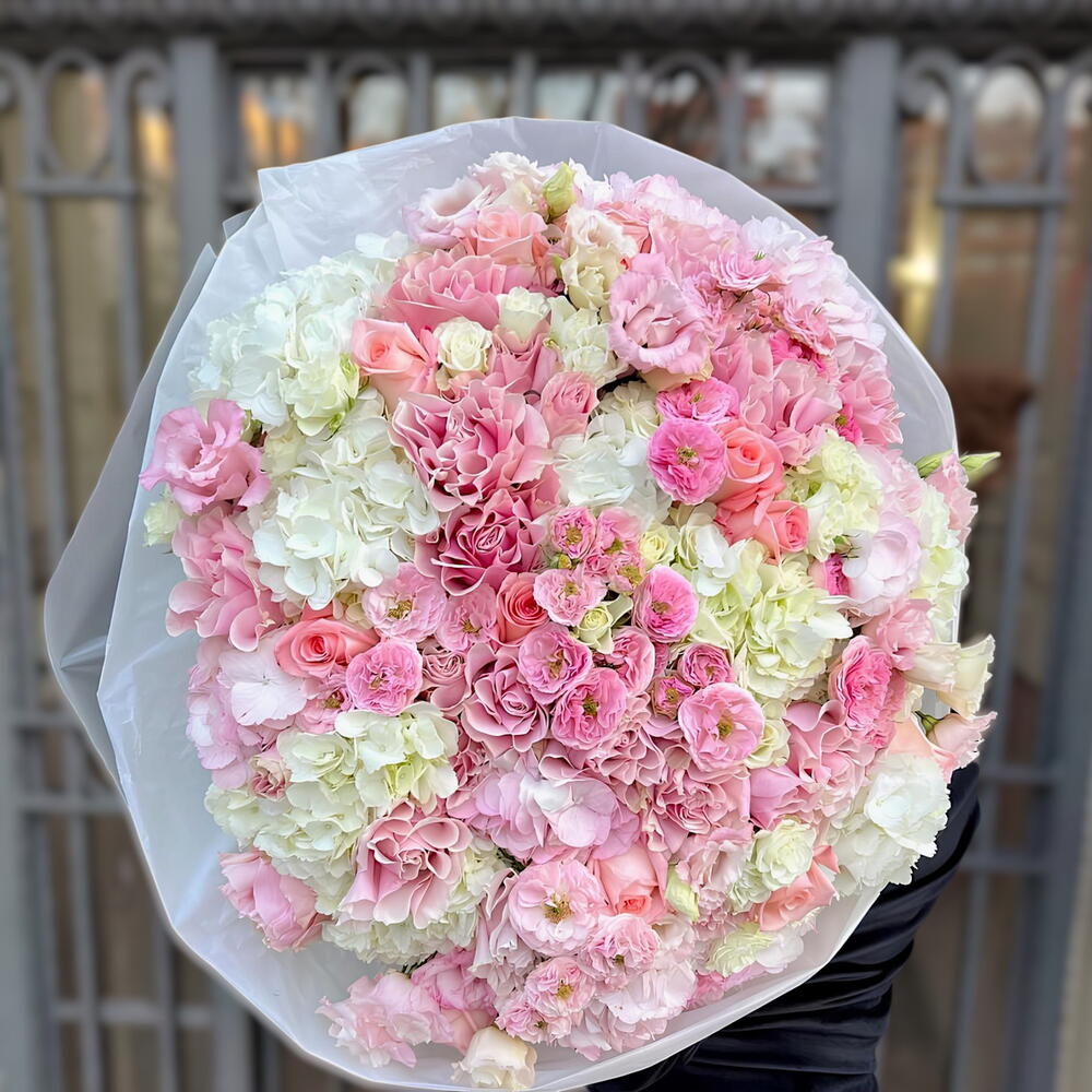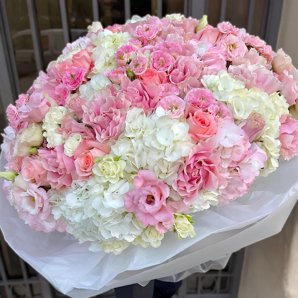 Lisianthus - 15 ud. rose - 35 ud. hydrangea mix - 15 ud. rosal - 15 ud. rosa peonía - 15 ud.