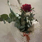 Aspidistra - 1 ud. eucalipto cinerea - 1 ud. espigas - 1 ud. rosa explorer 60cm - 1 ud. acordeón blanco - 1 ud.