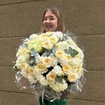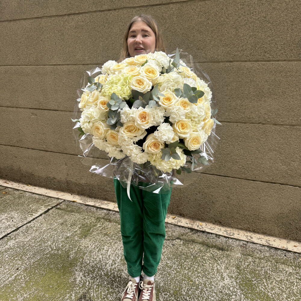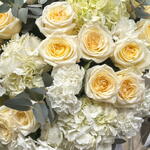 eucalipto - 10 ud. rosas - 23 ud. hortensia white - 9 ud. clavel - 15 ud.