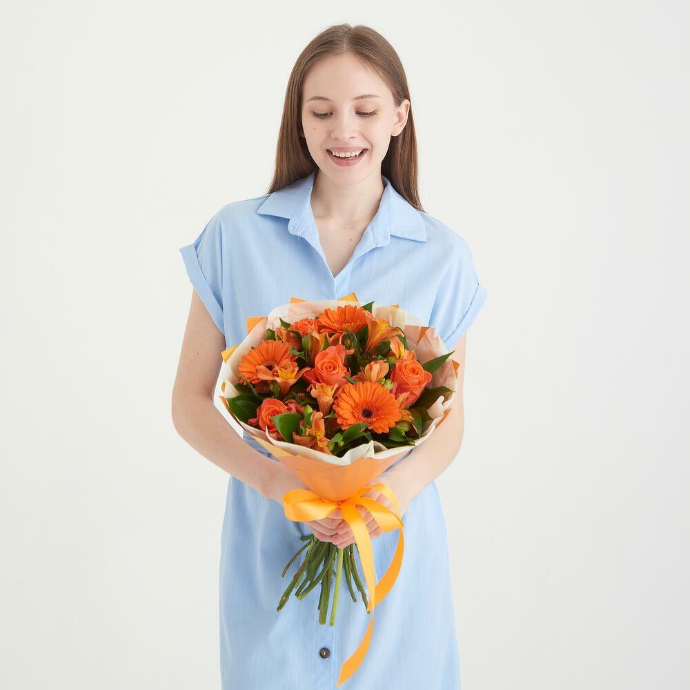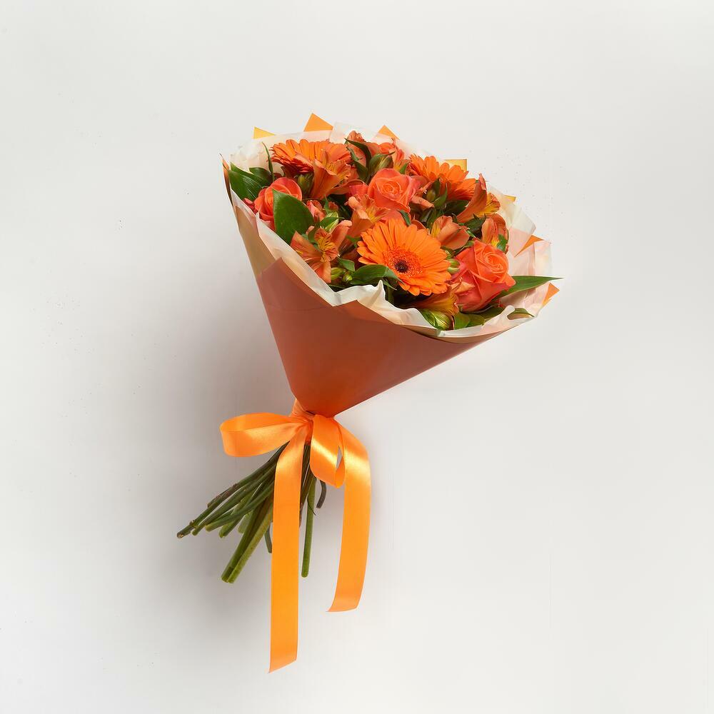 Charming bouquet of roses, mini gerberas, and alstroemerias. Your loved ones will definitely be pleased to receive such an elegant and showy bouquet.