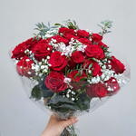 Este producto pertenece a la categoría De autor, confeccionado con suma elegancia y estilo. Compuesto por 20 unidades de rosas rojas, que destilan un atractivo aroma, y 10 unidades de paniculata blanca, simbolizando la pureza y la tranquilidad. Una combinación que no sólo agrada a los ojos, sino también al alma.