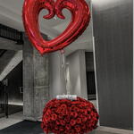 rosas rojas - 250 ud. globo corazón rojo - 1 ud. caja base - 1 ud.