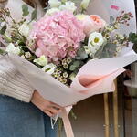 Lisianthus - 2 ud. garden rose - 4 ud. hydragea - 1 ud.