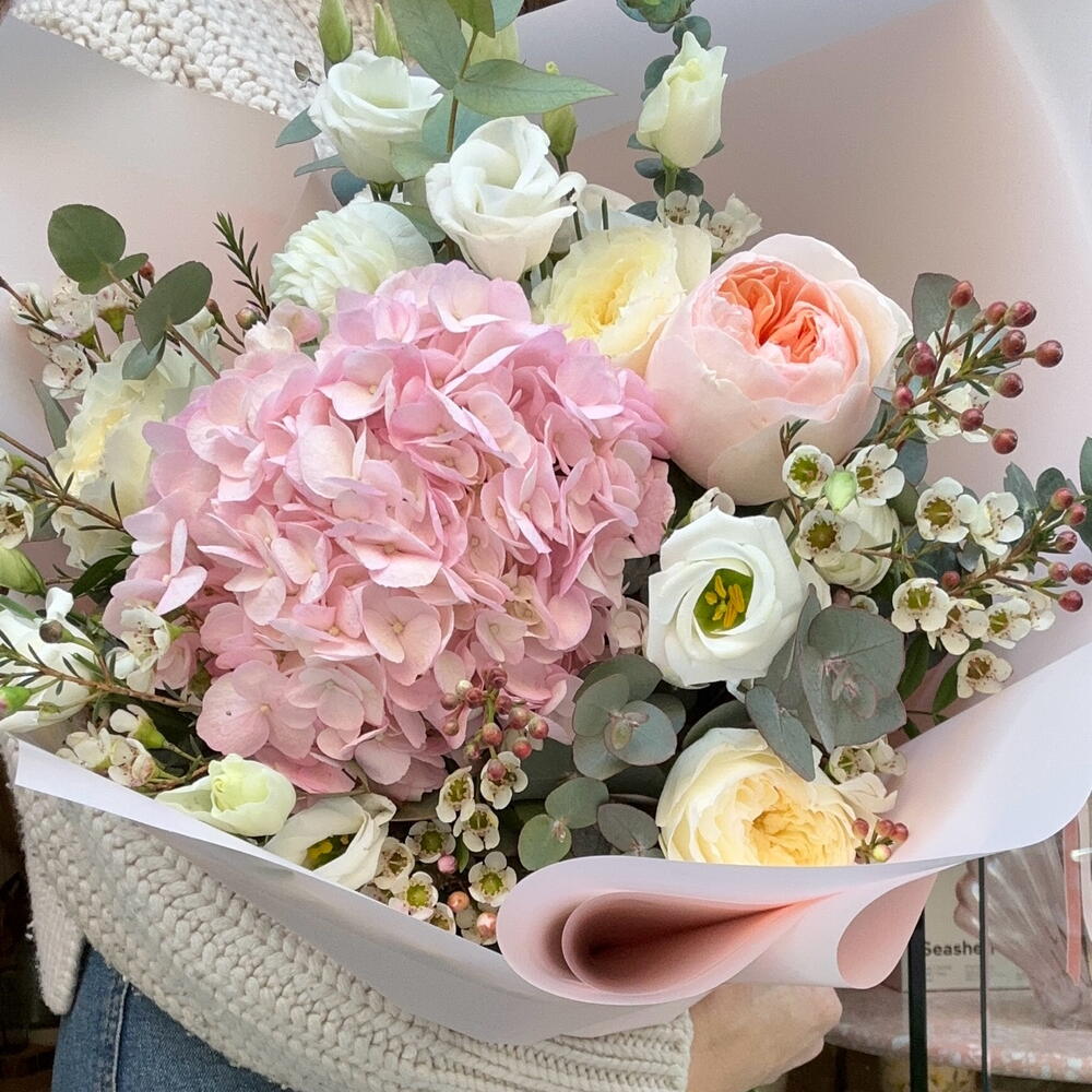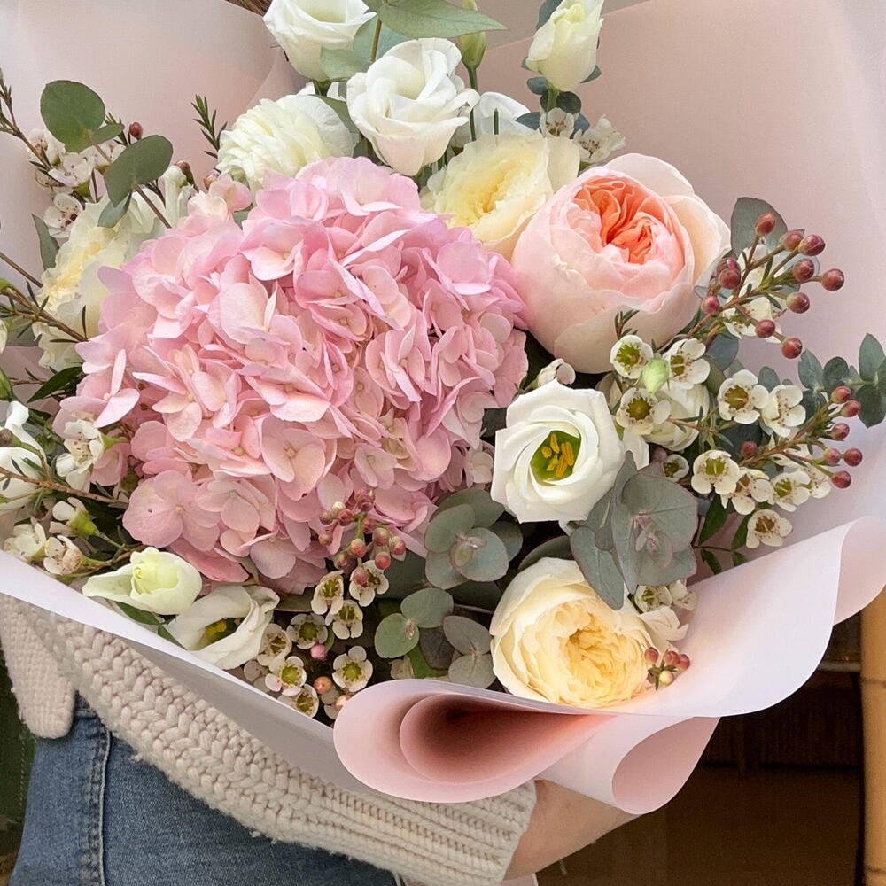 Lisianthus - 2 ud. garden rose - 4 ud. hydragea - 1 ud.