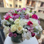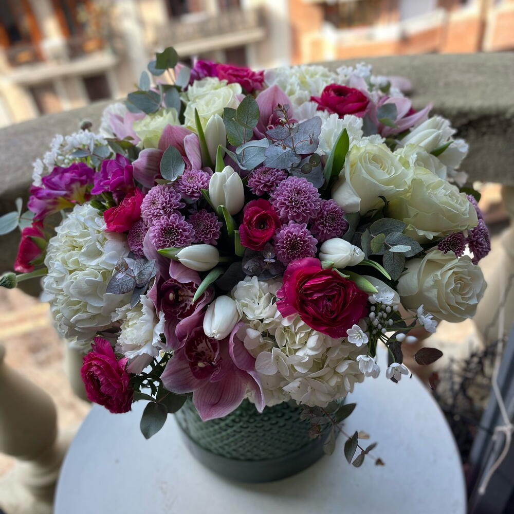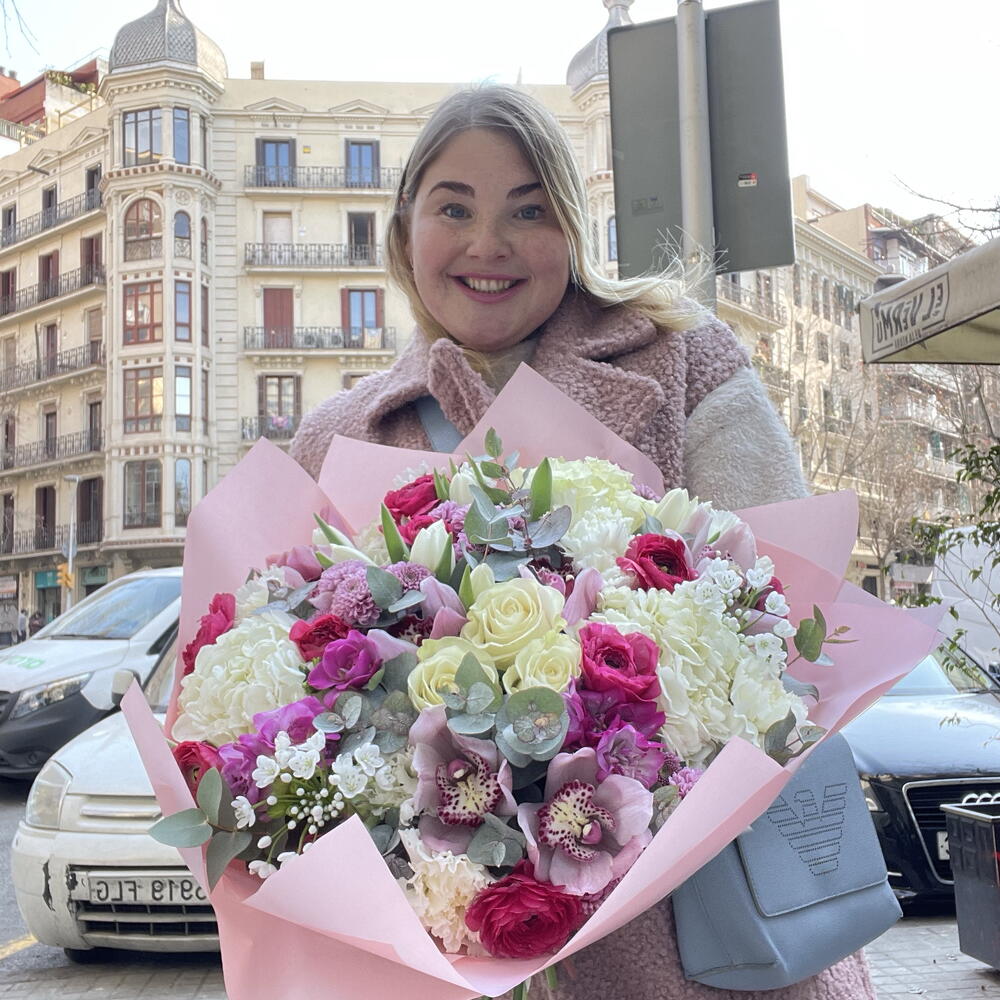 hortensia - 3 ud. rose - 9 ud. tulipanes - 10 ud. margaritas - 5 ud. claveles - 10 ud. cymbidium - 5 ud.
