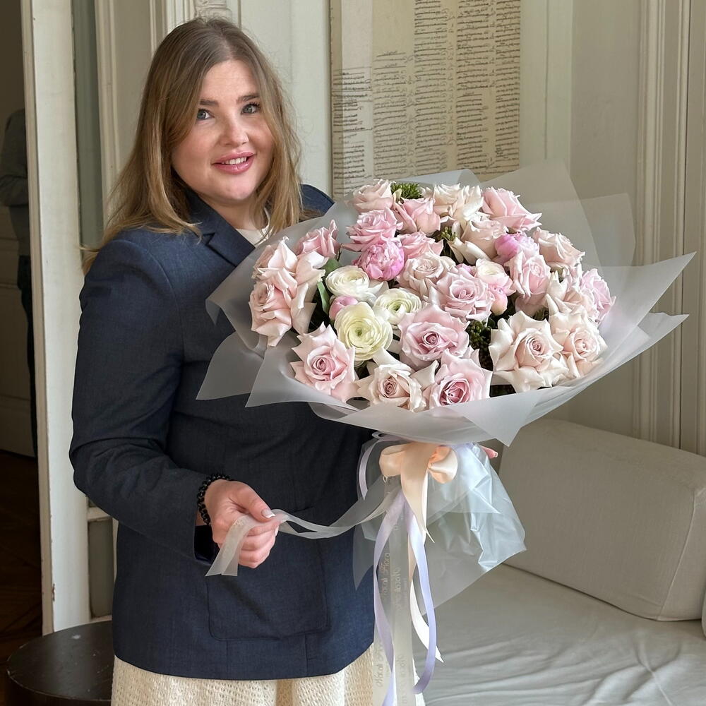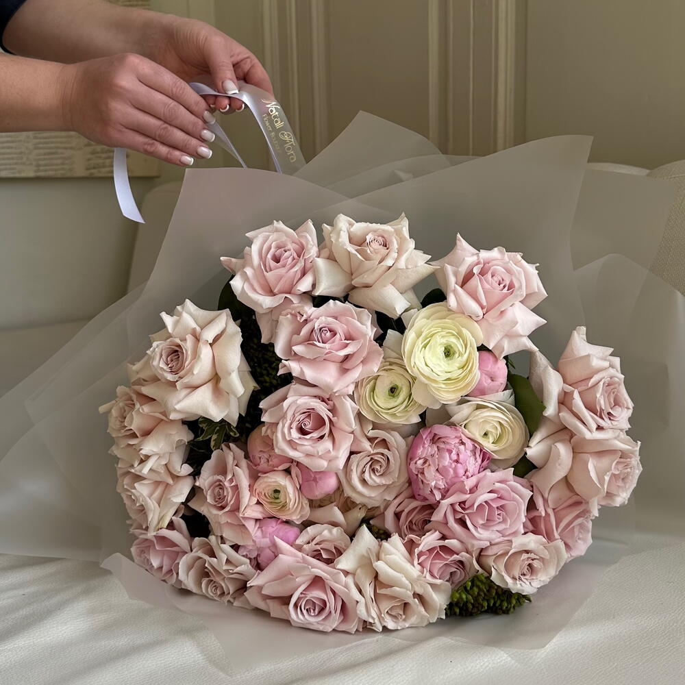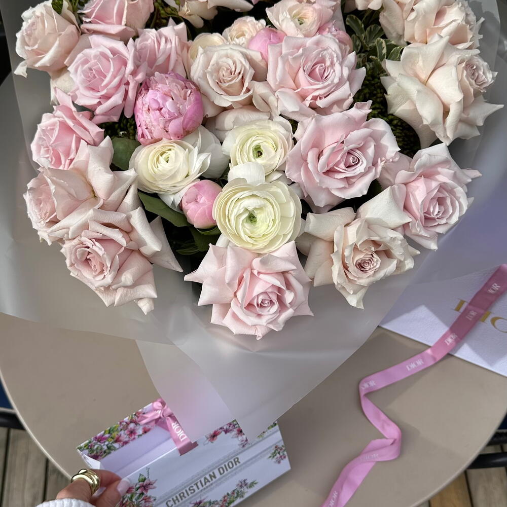 ranunculus - 7 ud. piones - 5 ud. verdes variados - 3 ud. roses - 17 ud.