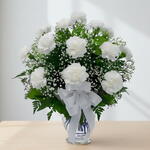 Este fascinante arreglo floral de la categoría De autor está compuesto por 18 bellísimos claveles blancos, resaltados con la sutileza de 3 ud. de paniculata y armonizado con 1 ud. de variados verdes. Cada elemento ha sido escogido cuidadosamente para juntar en una sola pieza toda la magia y belleza de la naturaleza.