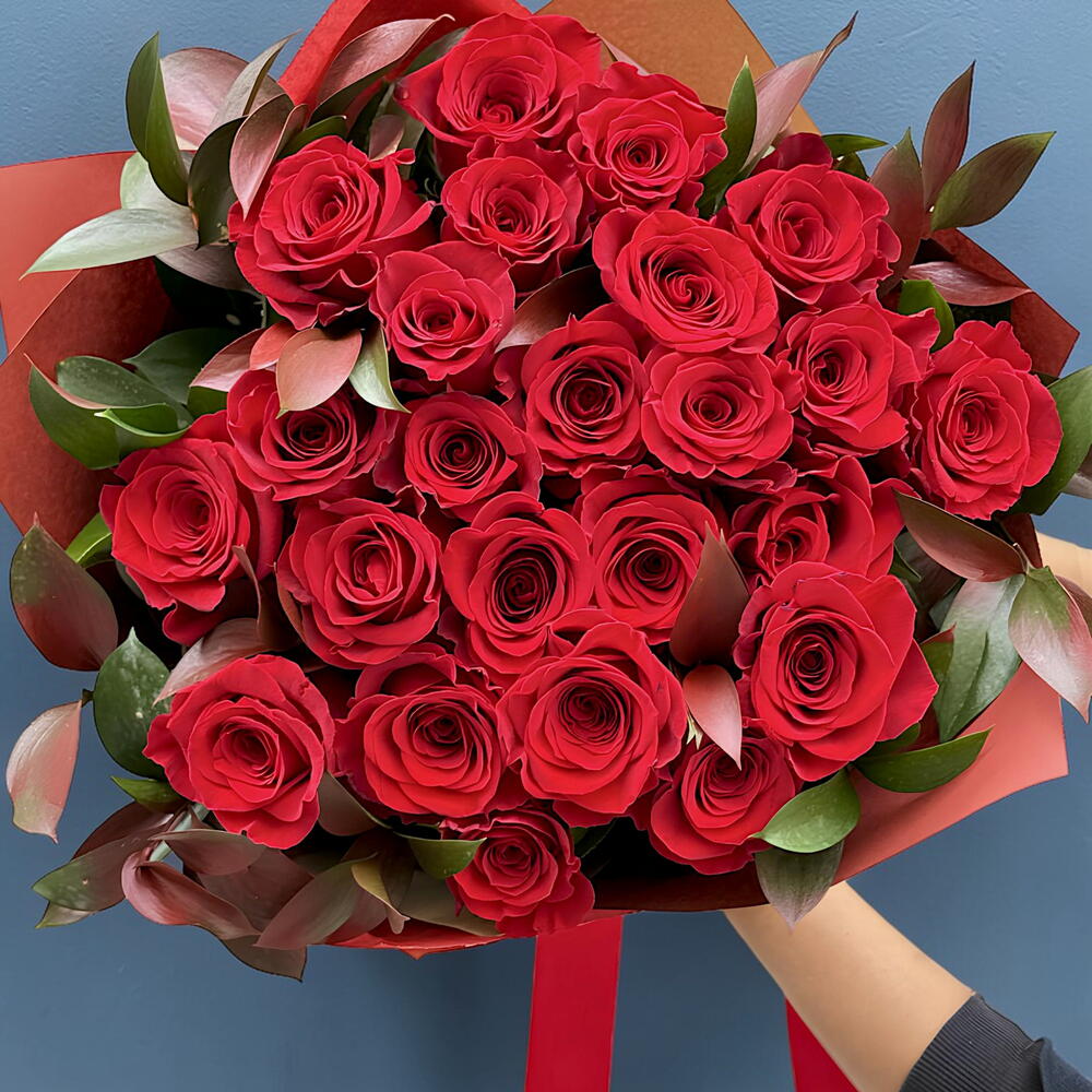 Ramo de rosas rojas y ruscus Un ramo ideal y pensado para esa persona especial