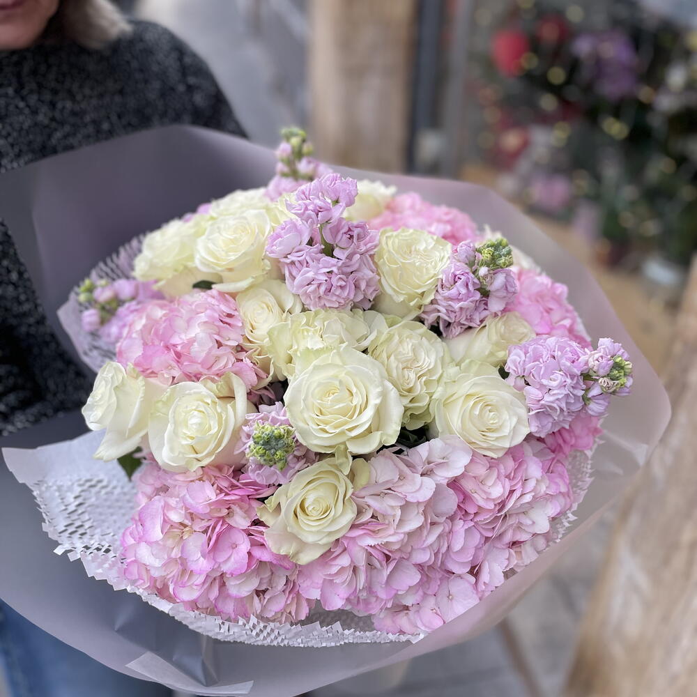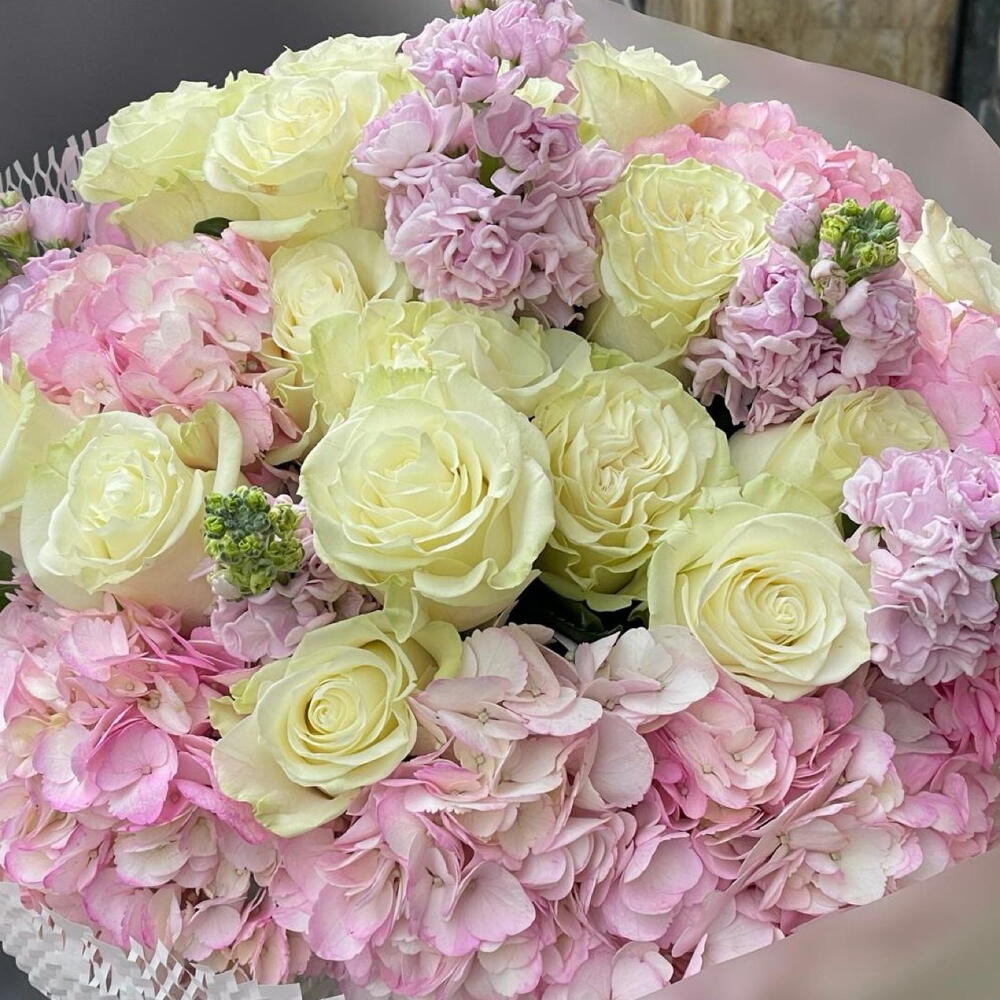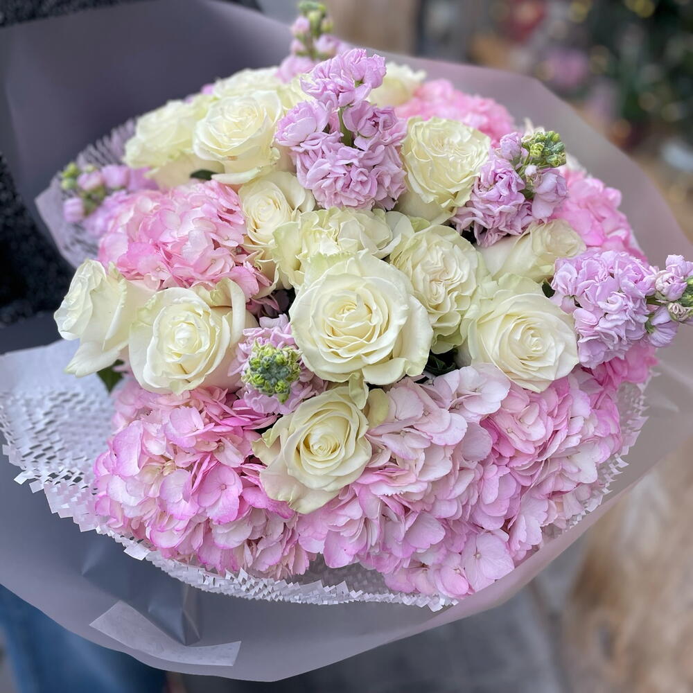 Hydrangea - 7 ud. rose - 15 ud. packaging design - 2 ud. alhelí - 10 ud.