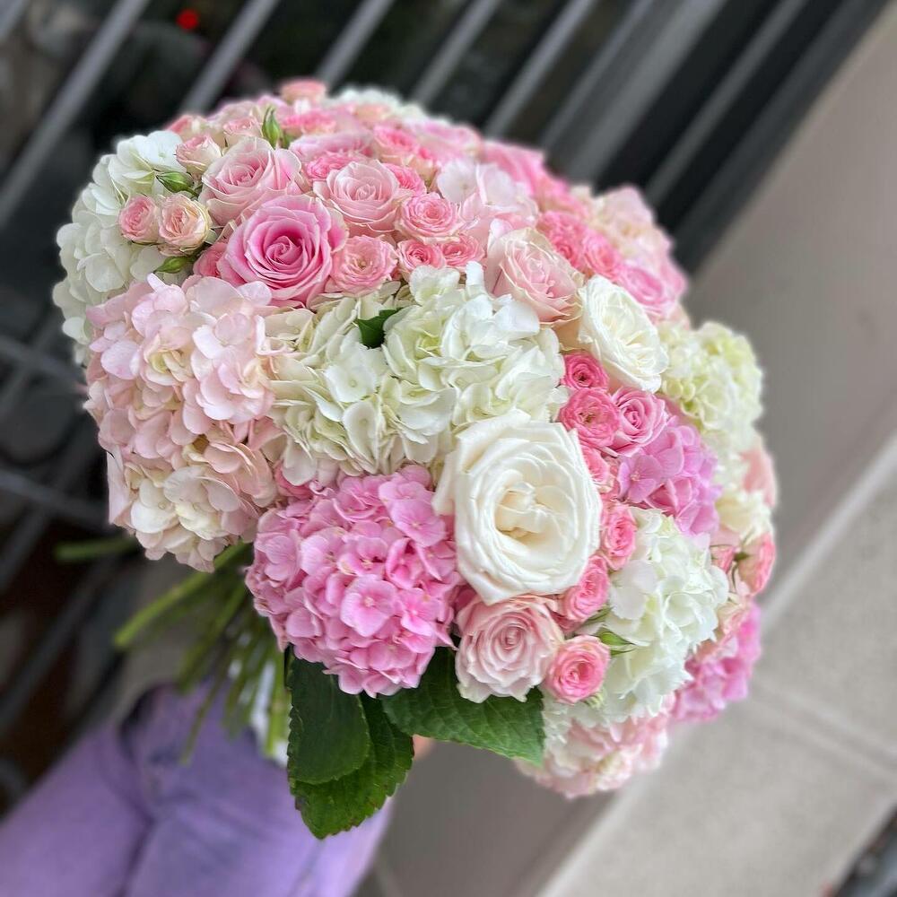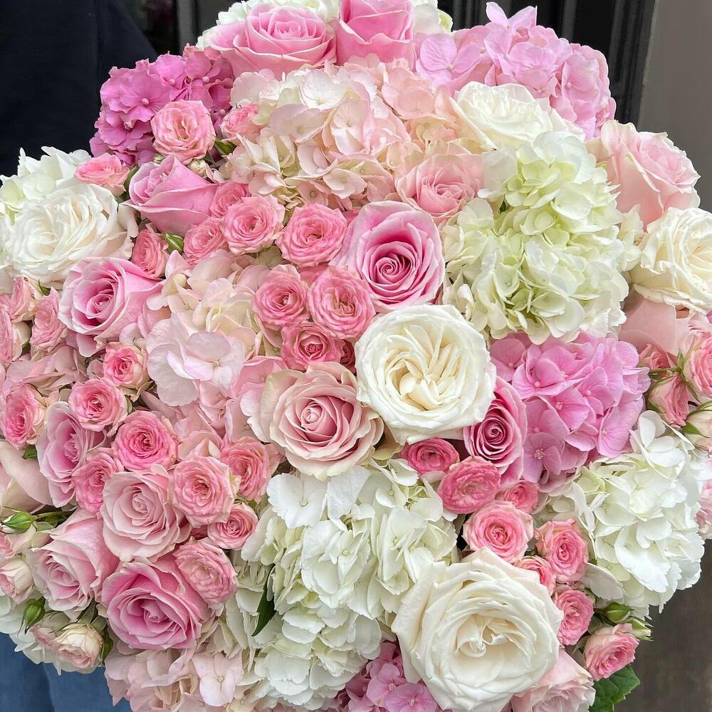 Un delicado ramo que combina tonalidades suaves de blanco y rosa pastel, ideal para expresar amor, ternura y elegancia.