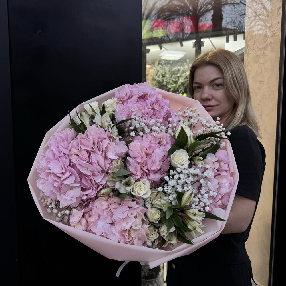 Alstroemeria - 5 ud. hortensia - 5 ud. rosas espay - 3 ud.