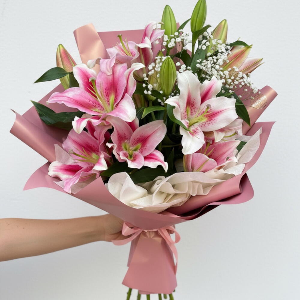 Ramo festivo de lirios rosas