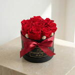 Ocho rosas rojas preservadas emergen del contraste profundo del negro, creando una pieza de impacto, elegancia y deseo. Ideal para declaraciones de amor que no se olvidan, regalos que perduran y emociones que arden en silencio.