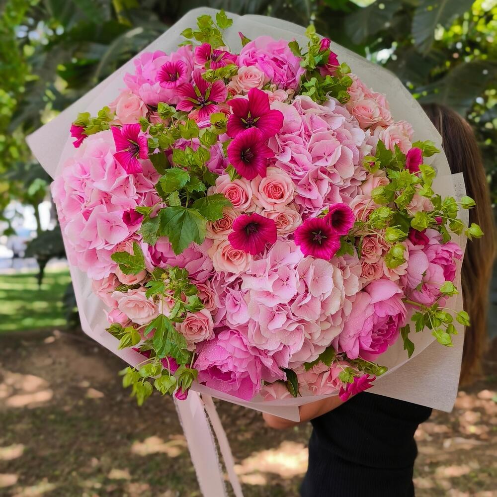Peonias - 10 ud. rosa ramificada - 20 ud. hortensia - 5 ud. flores de temporada - 10 ud.