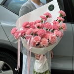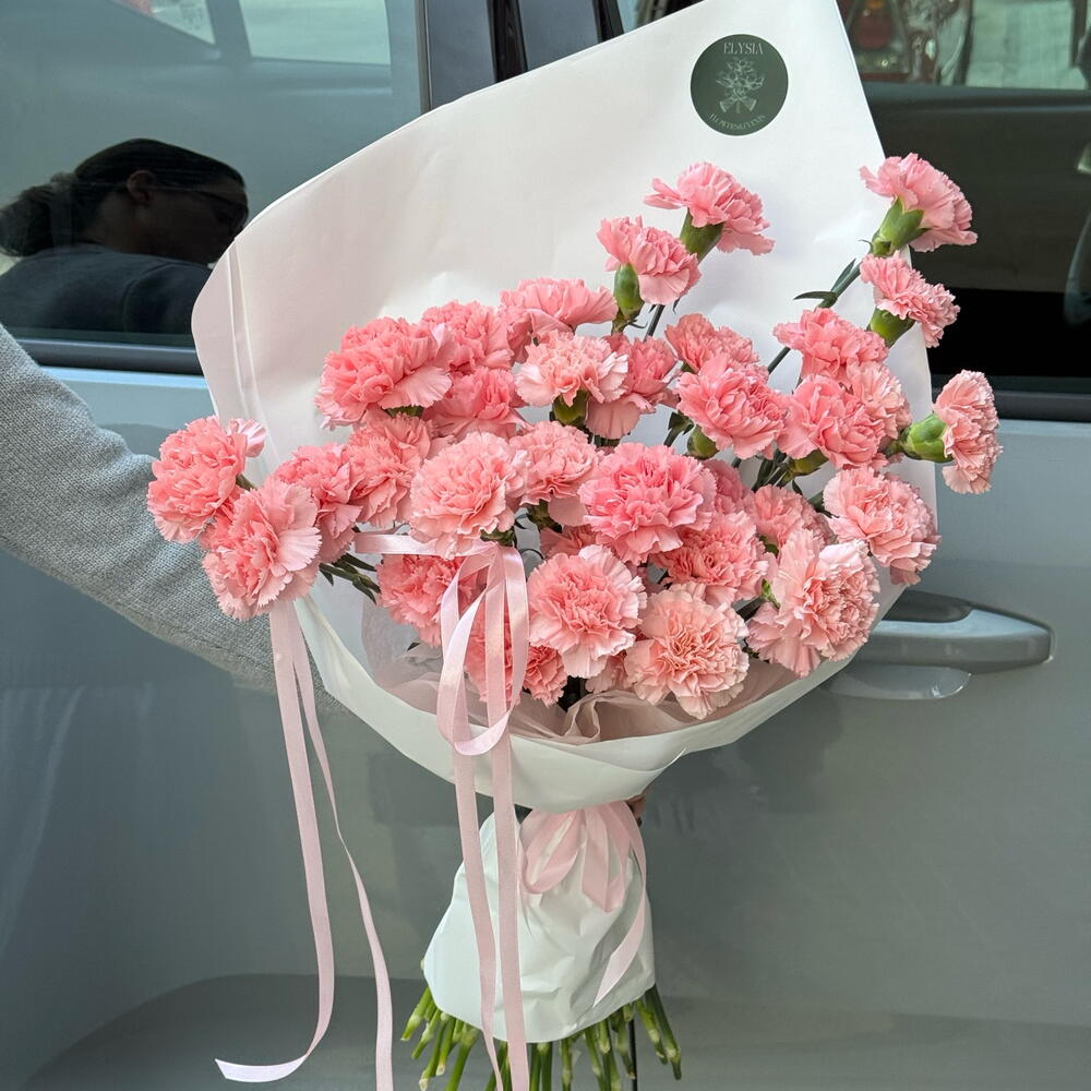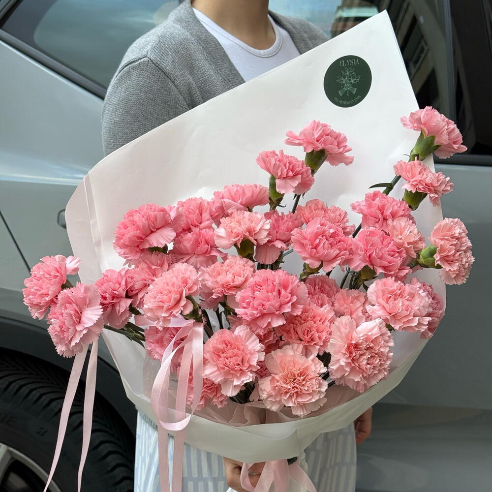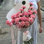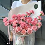 Una combinación elegante y muy rosa de clavelinas envueltas en papel blanco. Dulce y bonito, este ramo es perfecto para compartir sentimientos, alegrarle el día o llevarlo a una cita.