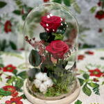 rosas preservadas - 2 ud. cupula de cristal - 1 ud. base de musgo - 1 ud. bola de algodon - 1 ud.