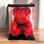 Este adorable oso hecho completamente de rosas artificiales en color rojo es el regalo perfecto para expresar amor y cariño de una manera original y duradera. Colocado en una elegante caja transparente con un lazo decorativo, este oso es ideal para ocasiones especiales como aniversarios, cumpleaños o San Valentín. Su diseño sofisticado y único convierte este detalle en una pieza decorativa que puede adornar cualquier espacio. Mantén el oso en un lugar seco y alejado de la luz solar directa para evitar que los colores se desgasten. Límpialo ocasionalmente con un paño seco o un plumero para mantener su apariencia impecable. No exponer a la humedad para preservar la calidad de las flores artificiales.
