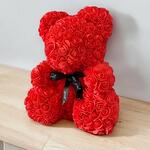 El osito Amor Eterno es una pieza exclusiva, elaborada cuidadosamente con rosas artificiales de color rojo intenso que simbolizan amor y pasión. Con un elegante lazo negro de adorno, este osito es el regalo perfecto para ocasiones especiales como San Valentín, aniversarios o cumpleaños.