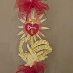 lazo de cinta - 2 ud. figura de madera - 1 ud. palma trabajada - 1 ud.