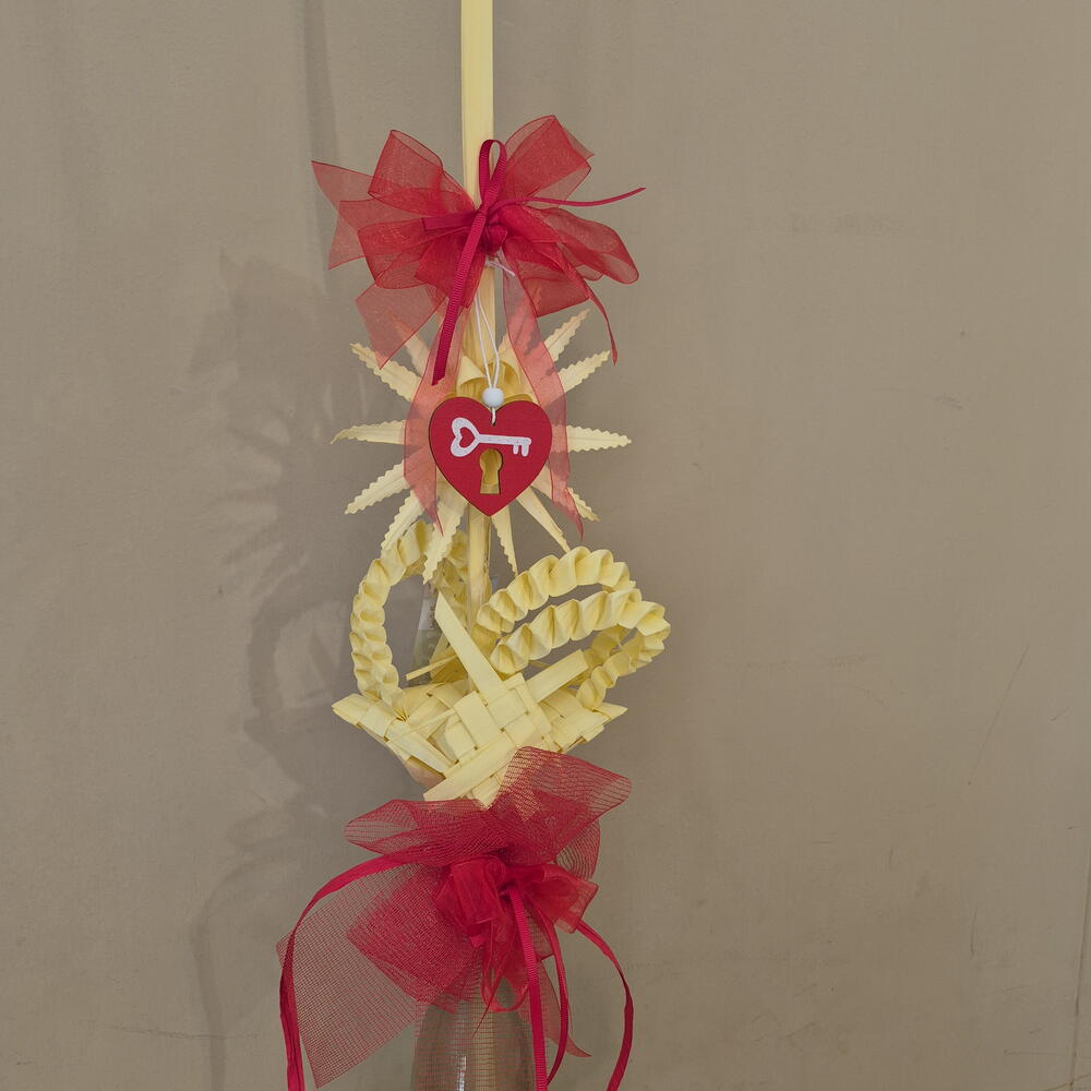 lazo de cinta - 2 ud. figura de madera - 1 ud. palma trabajada - 1 ud.