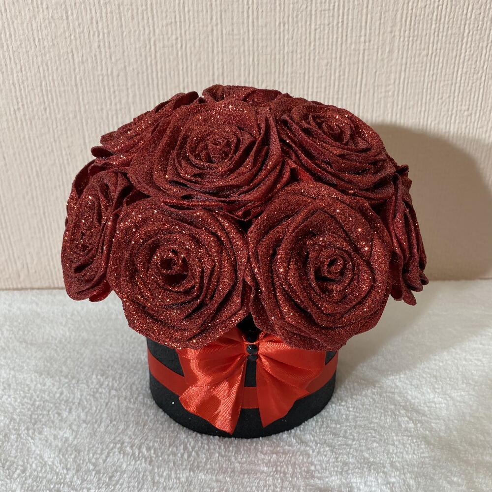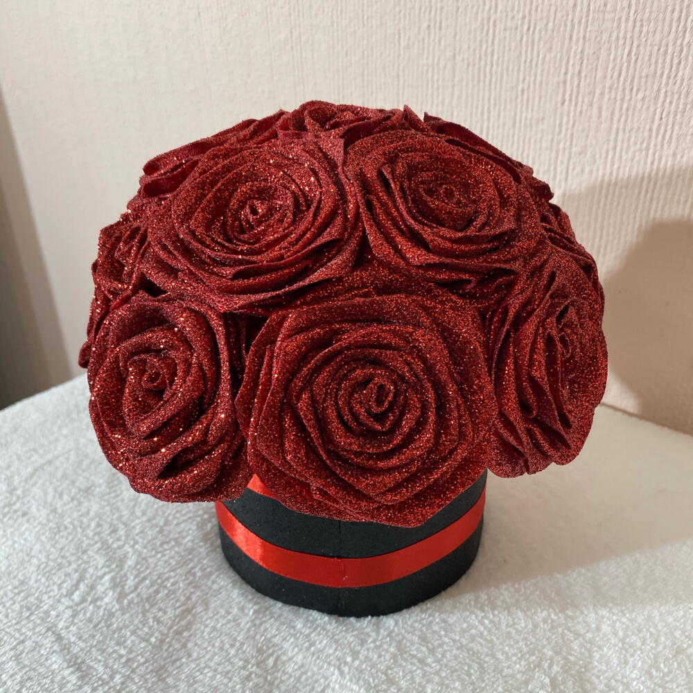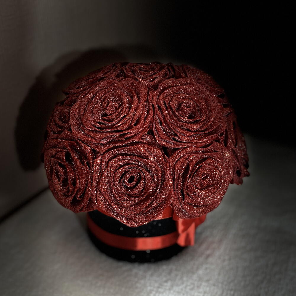 La rosa de la pasión Pasión, amor y lujo se encuentran en un momento eterno. 16 rosas eternas de color rojo intenso con purpurina en una caja negra con purpurina. Esto no es una rosa ni un regalo. ¡Esto es una confesión! ¡EDICIÓN LIMITADA! 100% hecho a mano, creado a partir de mi propio diseño exclusivo. Apasionado como regalo. Con carácter como decoración. Duradero como un sentimiento. El hermoso juego de la purpurina da vida a la rosa eterna. Una elección perfecta si: - No buscas lo común - Buscas un regalo único y eterno. - Cuando un regalo dice más que cualquier palabra