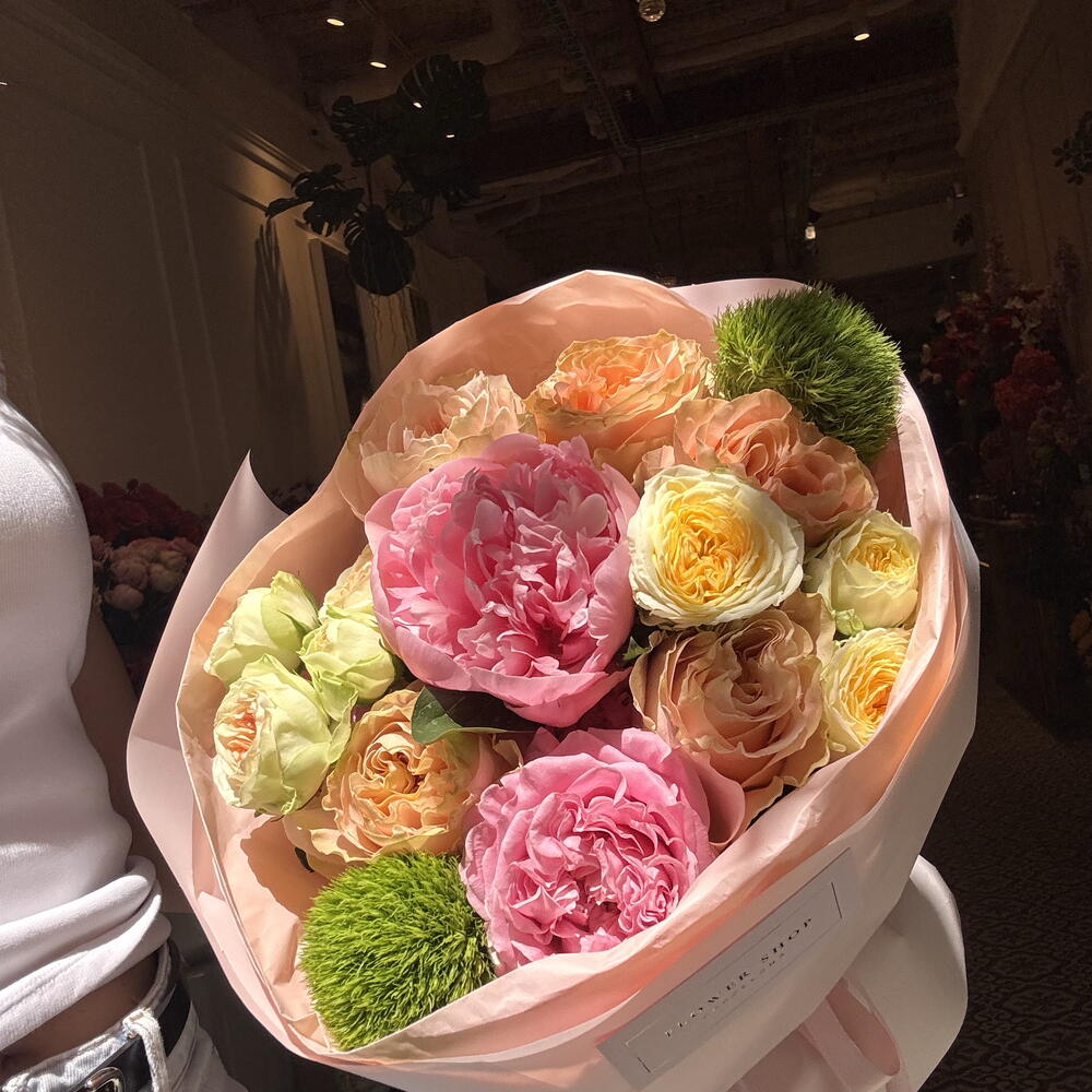 I do not recommend this store. The bouquet is beautiful, but the delivery is terrible: the courier was an hour late, and the store did not respond. I had to wait an entire hour in the cold without knowing whether the order would arrive or not.
