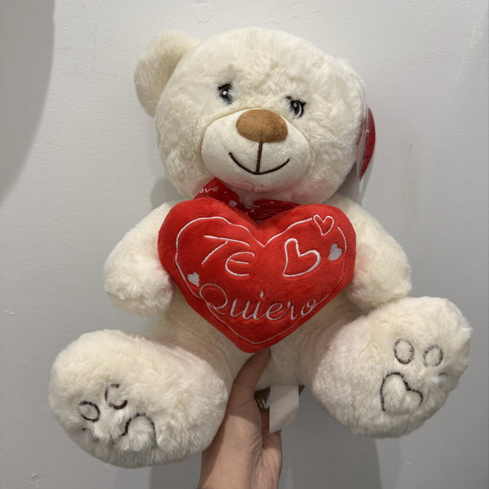 Oso de peluche suave y sutil amoroso. En color beige y blanco! Viene envuelto en papel transparente con cintas decorativas, ideal para regalar!