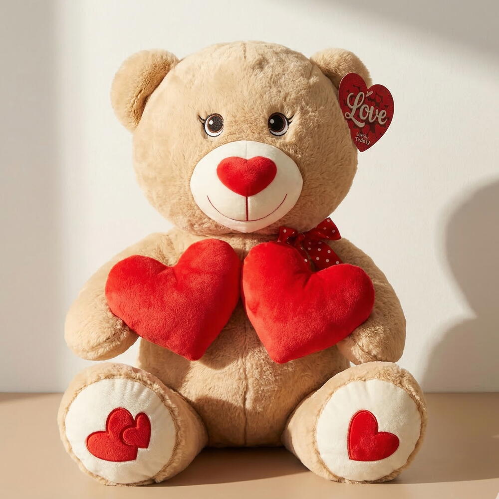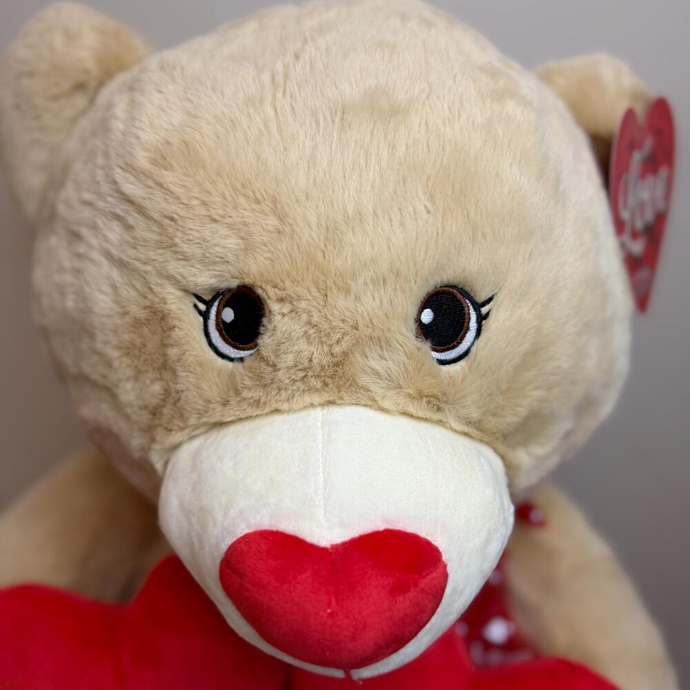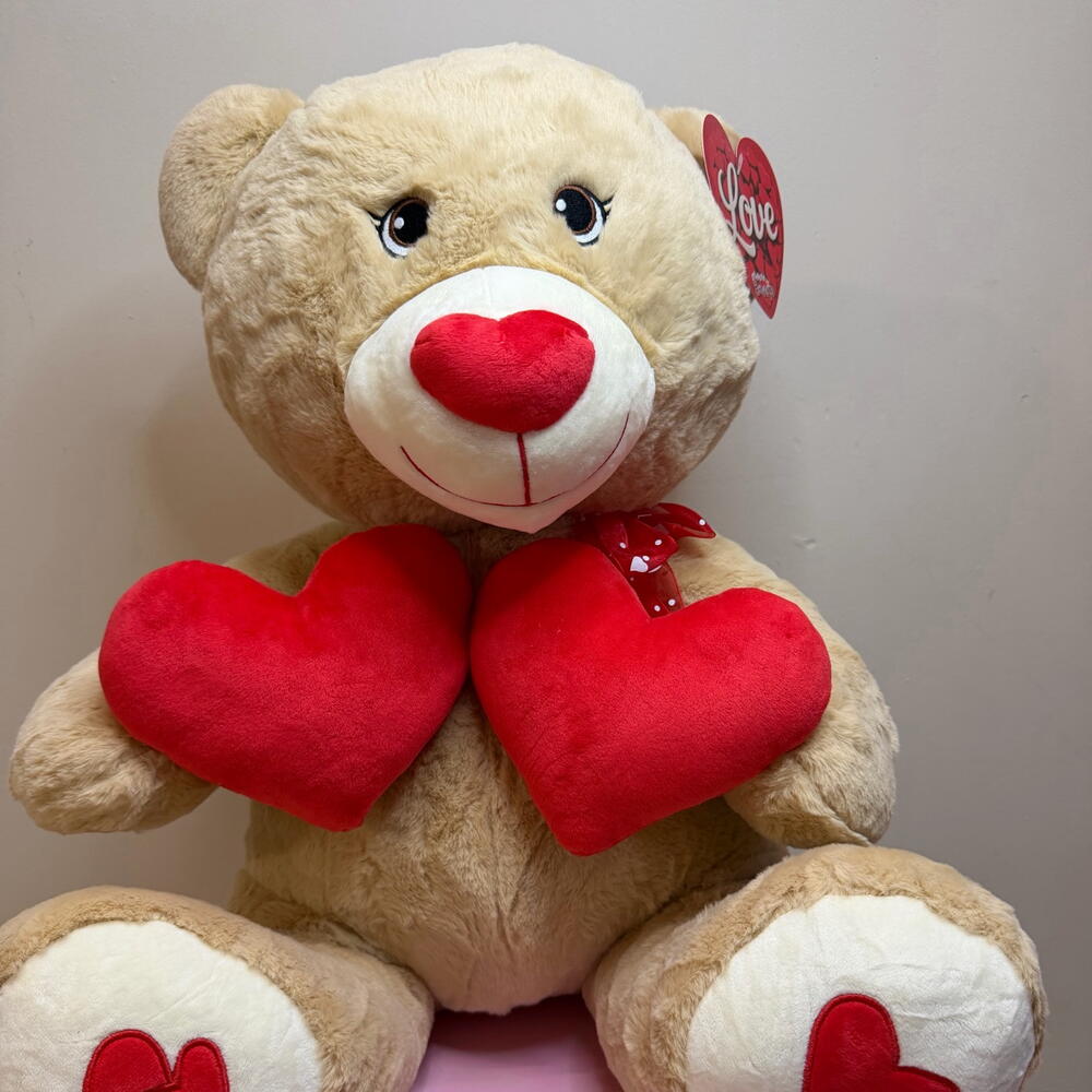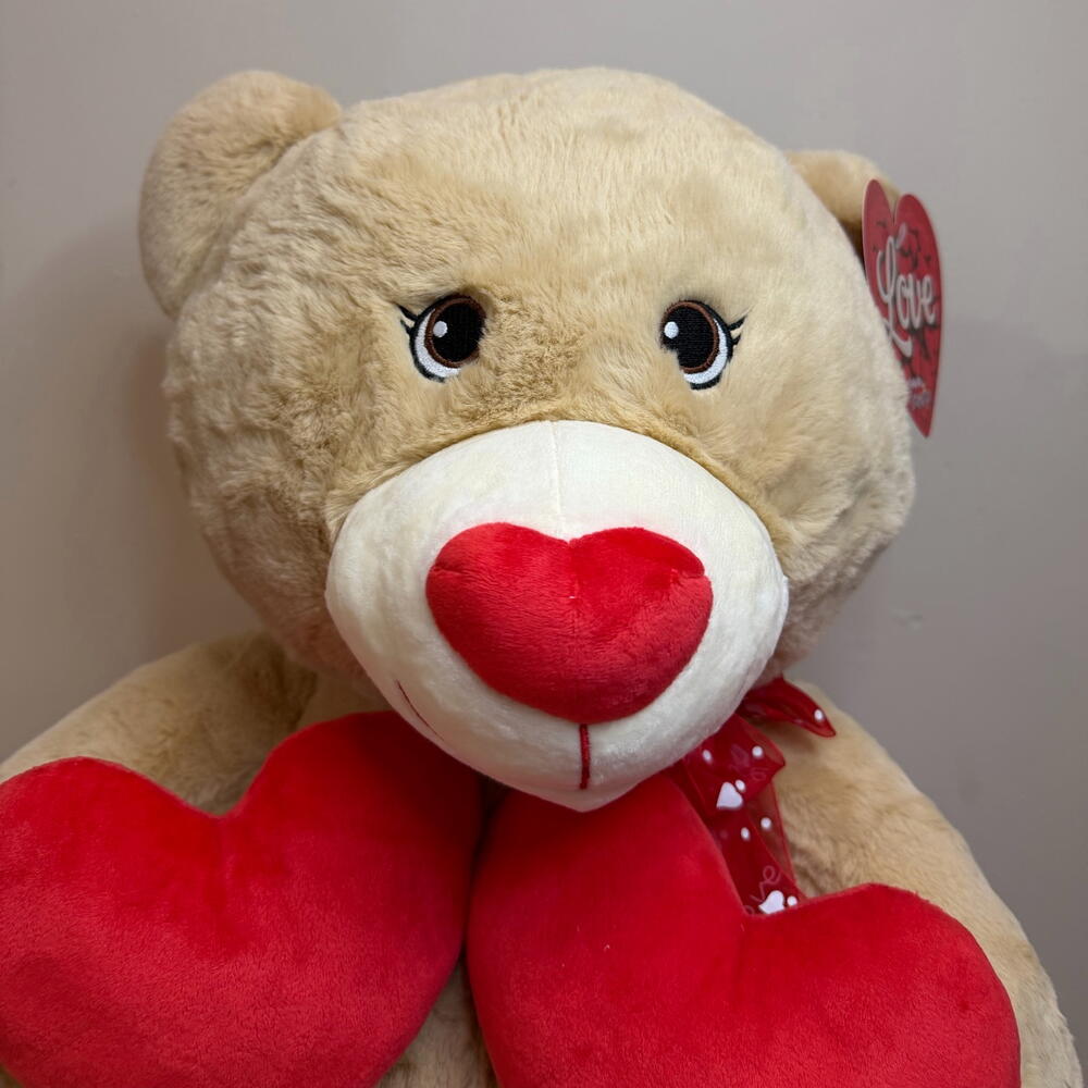 Oso de peluche beige con corazones tamano M 60 cm – regalo romantico para San Valentin, aniversario y ocasiones especiales