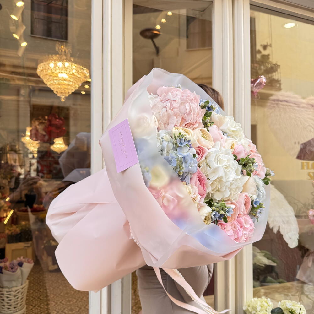I do not recommend this store. The bouquet is beautiful, but the delivery is terrible: the courier was an hour late, and the store did not respond. I had to wait an entire hour in the cold without knowing whether the order would arrive or not.