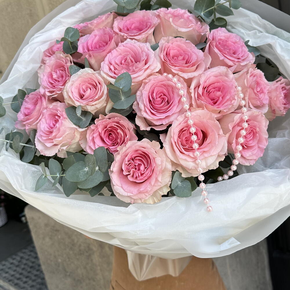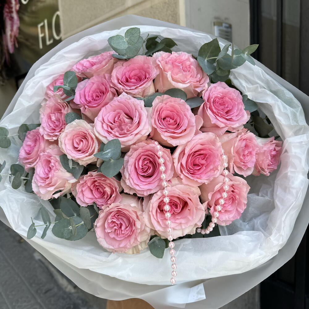 Decoration - 1 ud. pink roses - 25 ud. eucalipto - 7 ud.