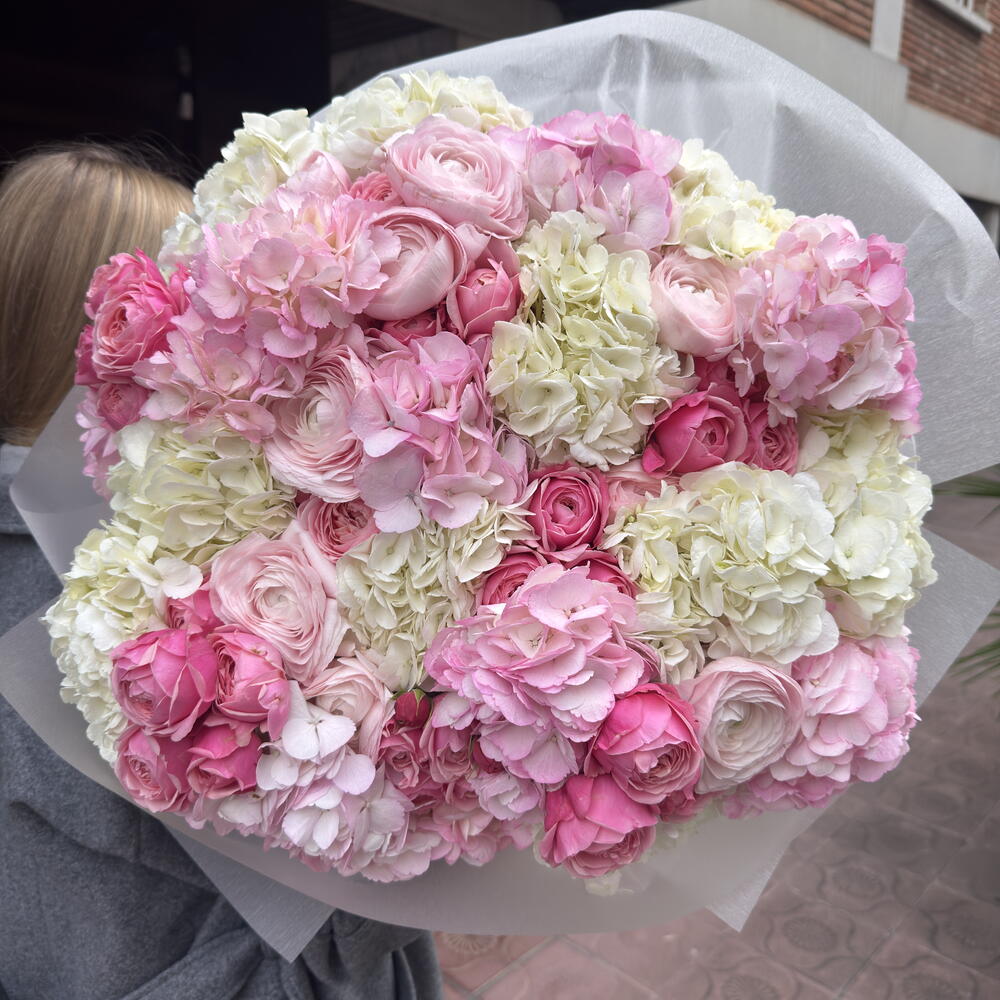 hortensias - 20 ud. ranunculus - 10 ud. rosas de peonias - 10 ud.