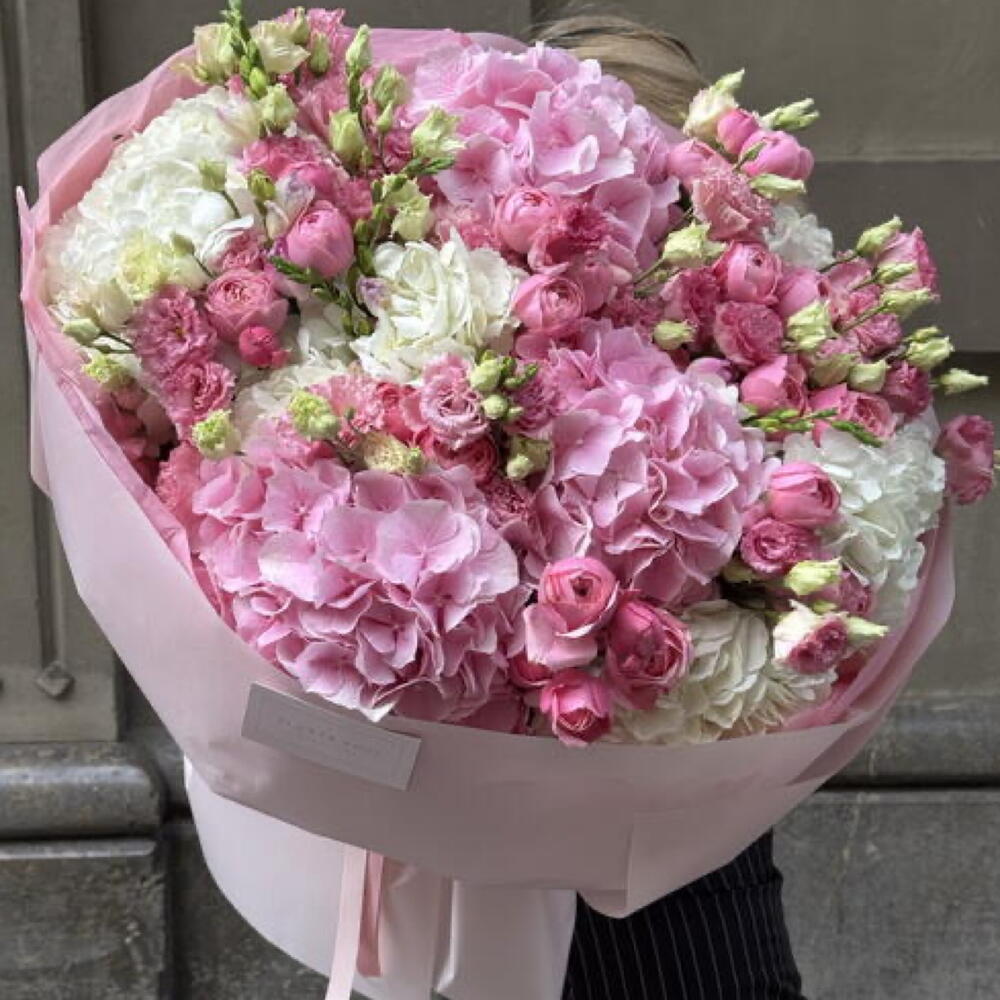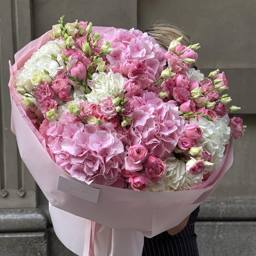 Лизиантус - 15 ud. Rosa кустовая - 10 ud. Hydrangea Mix - 8 ud.