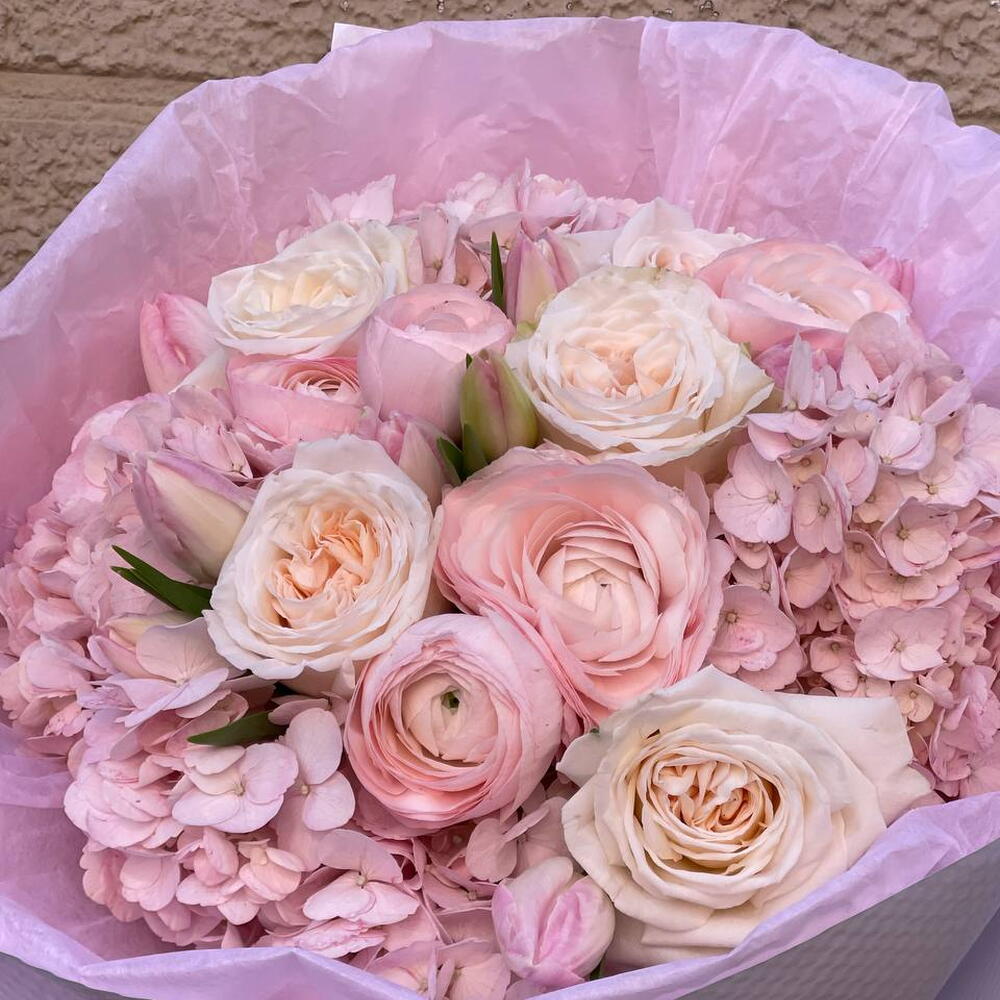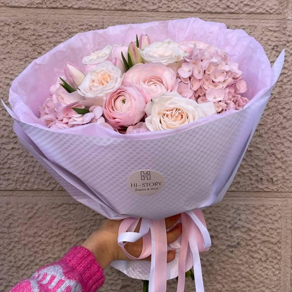 hortensia - 3 ud. ranunculus - 5 ud. tulipan - 9 ud. rosas - 5 ud.