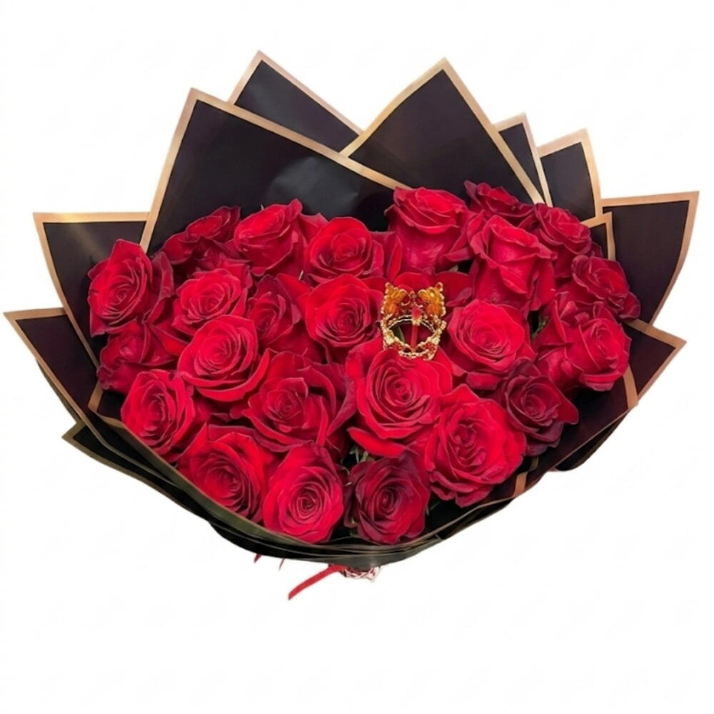 Reveal your true emotions with this elegant florists special bouquet of 25 lavish red roses. To enhance its beauty, each bouquet is adorned with a delicate corona and wrapped in a traditional Korean paper packaging. Perfect for any occasion, this extraordinary arrangement is sure to bring joy, warmth, and a touch of luxury.