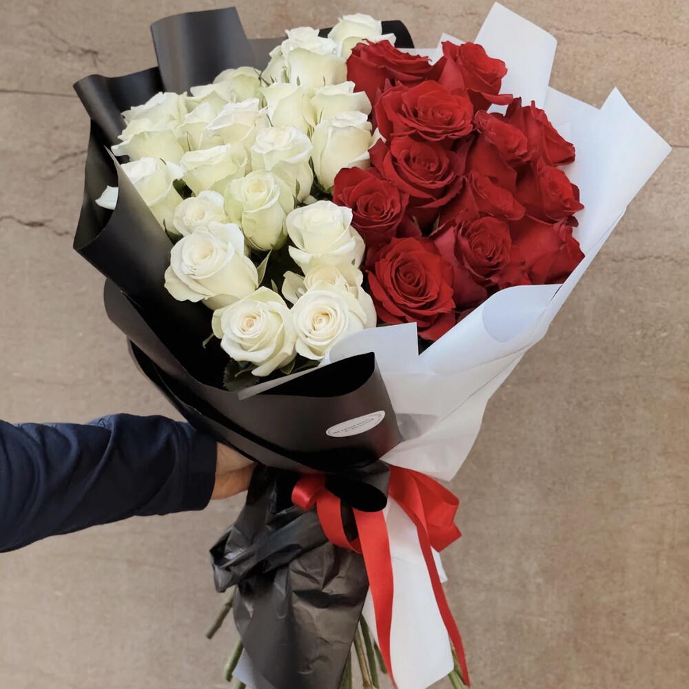 ES Pure Devotion es un ramo que habla de amor bonito, sincero y cuidado 💗 La mezcla de rosas rojas y blancas 🌹🤍 simboliza pasión y ternura, creando un equilibrio dulce y lleno de significado. Con 51 rosas 💐 es el detalle perfecto para decir te quiero sin prisas, con intención y desde el corazón 💘 Porque hay amores que no necesitan gritar… solo sentirse 🫶✨ ✦━━━━━━━━━━━━━━━✦ EN Pure Devotion is a bouquet that speaks of sweet, sincere, and thoughtful love 💕 The blend of red and white roses 🌹🤍 represents passion and tenderness, creating a soft and meaningful balance. With 51 roses 💐 it’s the perfect way to say I love you gently, intentionally, and straight from the heart 💘 Because some loves don’t need to be loud… they just need to be felt 🫶✨