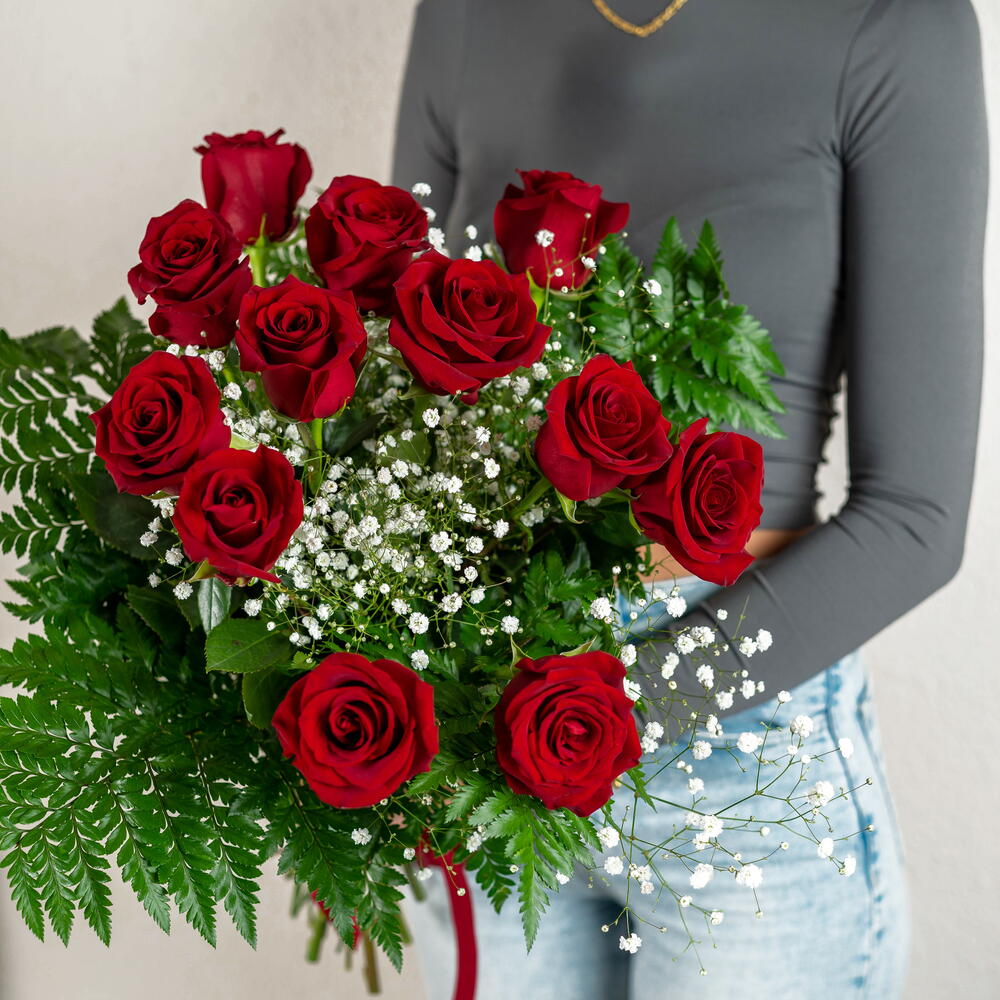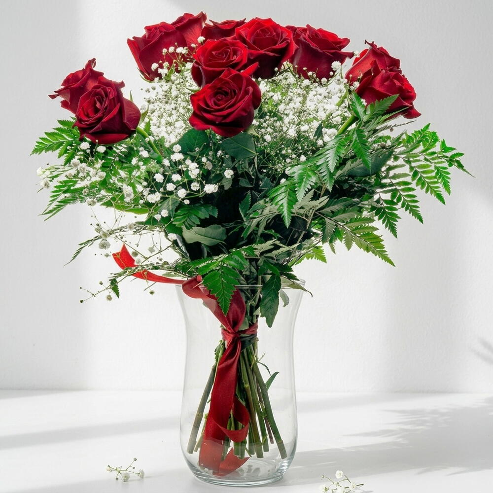 Descubre la elegancia intemporal de nuestros Ramos Clásicos. Este ramo está cuidadosamente compuesto por 3 unidades de delicada paniculata, acompañadas por 12 deslumbrantes rosas rojas, famosas por su intensidad y belleza. Además, se complementa con 3 unidades de helecho de cuero, una opción verde sofisticada que realza el rojo profundo de las rosas. Este conjunto floral es la definición perfecta de un clásico: siempre apropiado, siempre impresionante. Una elección ideal para cualquier ocasión, desde cumpleaños hasta aniversarios o simplemente para iluminar el día de alguien especial.