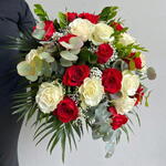Un ramo elegante y sofisticado que combina la pasión de las rosas rojas con la pureza de las rosas blancas en una armonía perfecta. Esta composición simboliza amor, respeto y equilibrio, convirtiéndose en un regalo lleno de significado. El eucalipto y el follaje verde aportan frescura y volumen, creando un contraste natural que realza cada flor. Los delicados detalles de gypsophila añaden ligereza y un toque romántico al conjunto. Ideal para ocasiones como bodas, aniversarios, San Valentín, cumpleaños o momentos especiales que merecen un gesto inolvidable. Su forma redondeada y abundante lo convierte en un ramo impactante y lleno de estilo. Para conservar su frescura, corta los tallos en diagonal, colócalos en agua limpia y cámbiala cada 2 días, evitando el sol directo.