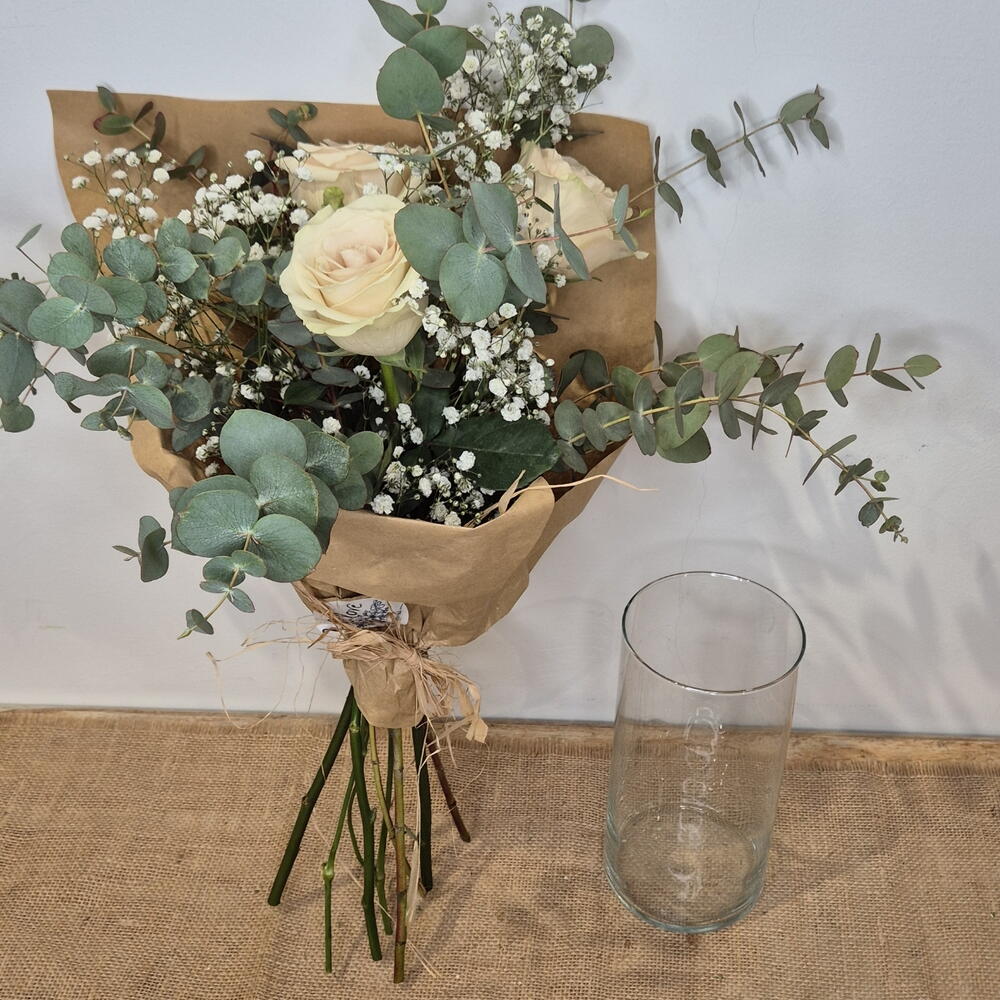 eucalipto - 6 ud. paniculata blanca - 3 ud. rosas blanco rosa - 3 ud.