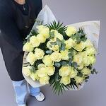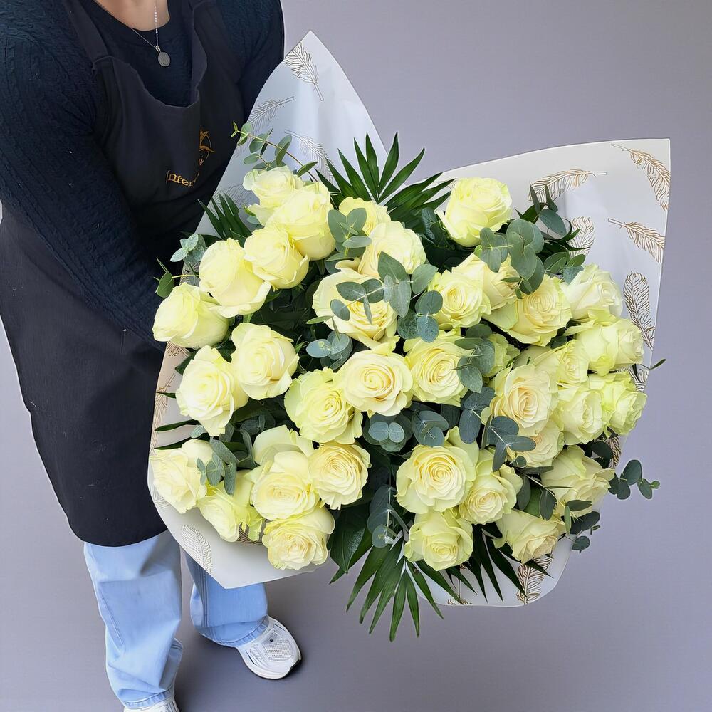 Ramo de 40 rosas blancas acompañado de verdes
