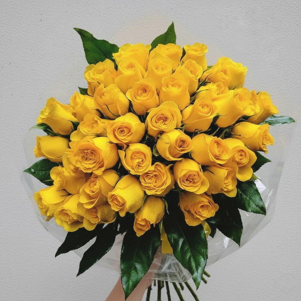 Este impresionante ramo de rosas amarillas irradia alegría, energía y una luminosidad que transforma cualquier espacio. Cada rosa, fresca y vibrante, se abre suavemente mostrando un color cálido que simboliza amistad, gratitud y buenos deseos. La composición es elegante y equilibrada, lo que lo convierte en un regalo memorable y lleno de significado. Es ideal para cumpleaños, aniversarios, celebraciones especiales, agradecimientos o para sorprender a alguien con un gesto luminoso y optimista. Para mantener su frescura, coloca el ramo en un jarrón con agua limpia, evita la luz solar directa y cambia el agua cada dos días. También es recomendable cortar los tallos en diagonal antes de colocarlos nuevamente en el jarrón.