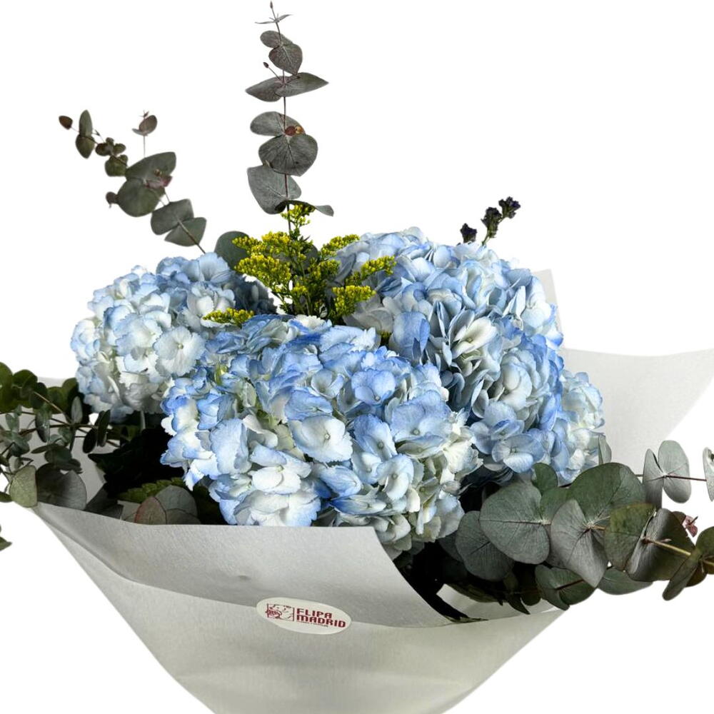 Este clásico ramo de flores se compone de 5 hermosas hortensias, acompañadas por 5 ramas de refrescante eucalipto. Para rematar el conjunto, se le añaden 5 flores complementarias, creando un arreglo floral equilibrado y atractivo. El misterio de las flores complementarias añade un toque único a cada ramo, convirtiéndolo en una auténtica sorpresa al recibirlo. Un regalo perfecto para cualquier ocasión y que sin duda aportará una nota de color y frescura a cualquier ambiente.