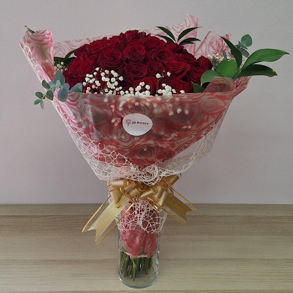 Nuestro ramo de 50 rosas rojas premium te permite expresar todo el amor que sientes por la persona que tanto amas. Demuéstraselo con nuestras rosas rojas ecuatorianas premium, cultivadas en nuestra florícola de Ecuador e importadas a Barcelona semanalmente. Unas rosas frescas y duraderas.