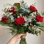 Ramo de 6 Rosas Rojas con Verdes Variados
