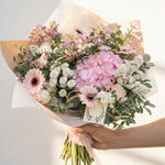 El Ramo ADA de hortensias en tonos pastel es un bouquet elegante y delicado diseñado para transmitir alegría, ternura y sofisticación. Esta composición floral combina hortensias rosadas con flores de temporada en colores suaves, creando un arreglo armonioso y luminoso perfecto para sorprender en cualquier ocasión especial. Este bouquet romántico de hortensias y gerberas es ideal para cumpleaños, nacimientos, aniversarios, regalos románticos o detalles de agradecimiento. Gracias a sus tonos pastel y su estilo natural, también es una excelente opción para decorar el hogar o acompañar celebraciones especiales. Cada ramo se elabora de forma artesanal con flores frescas de temporada. La imagen es orientativa; dependiendo de la disponibilidad, algunas variedades pueden variar ligeramente, pero siempre se respetará el estilo, la gama de colores y el valor floral del bouquet.