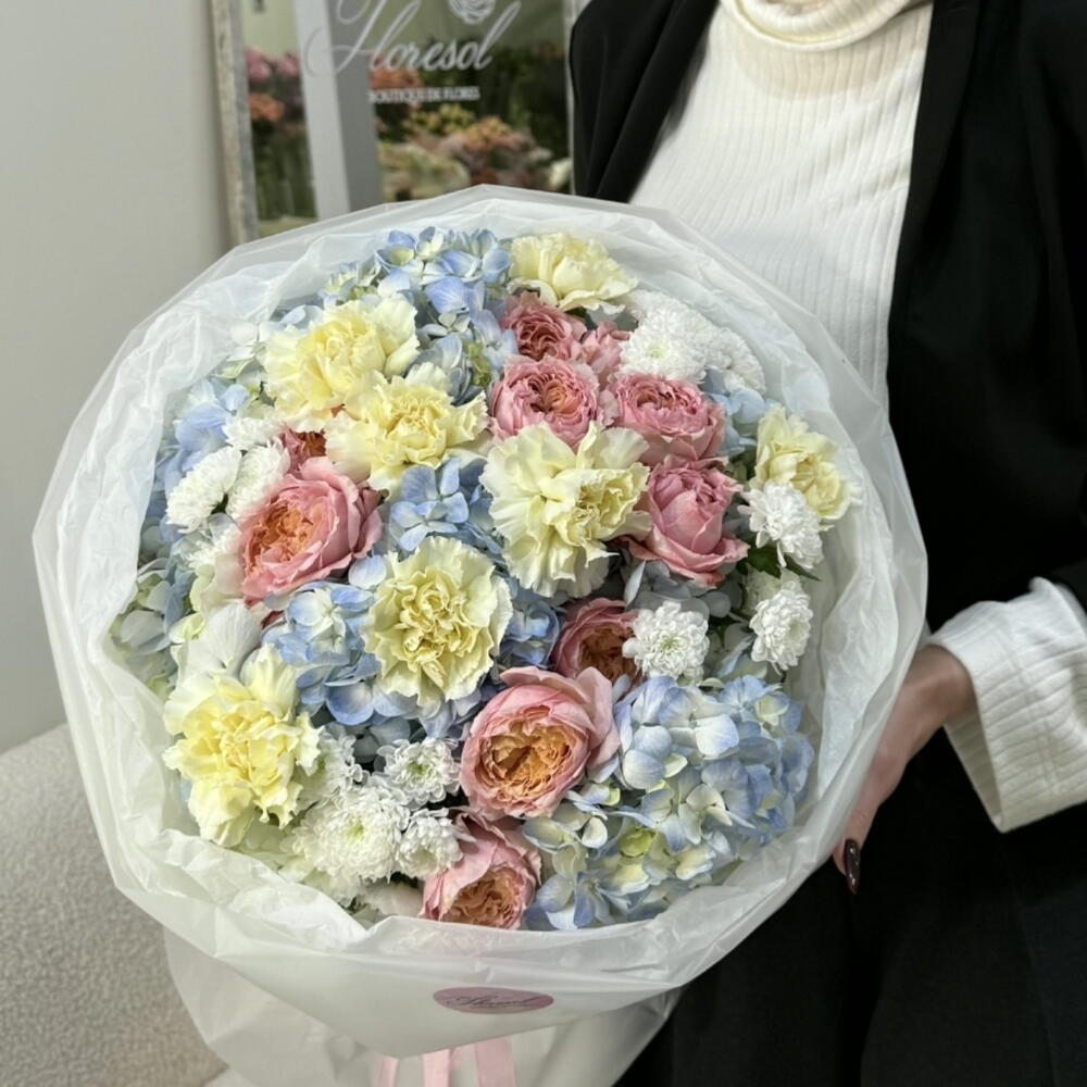 hortensia - 7 ud. rosas - 3 ud. clavel - 7 ud. crisantemos - 5 ud.