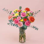Este bouuqet clásico e irresistible está bellamente compuesto por 7 delicadas ramas de eucalipto y 20 encantadores claveles. Estos elementos combinan para crear un ramo refrescante y vivaz que se ve tan hermoso como huele. Da un toque elegante a cualquier evento o espacio con esta majestuosa combinación floral.