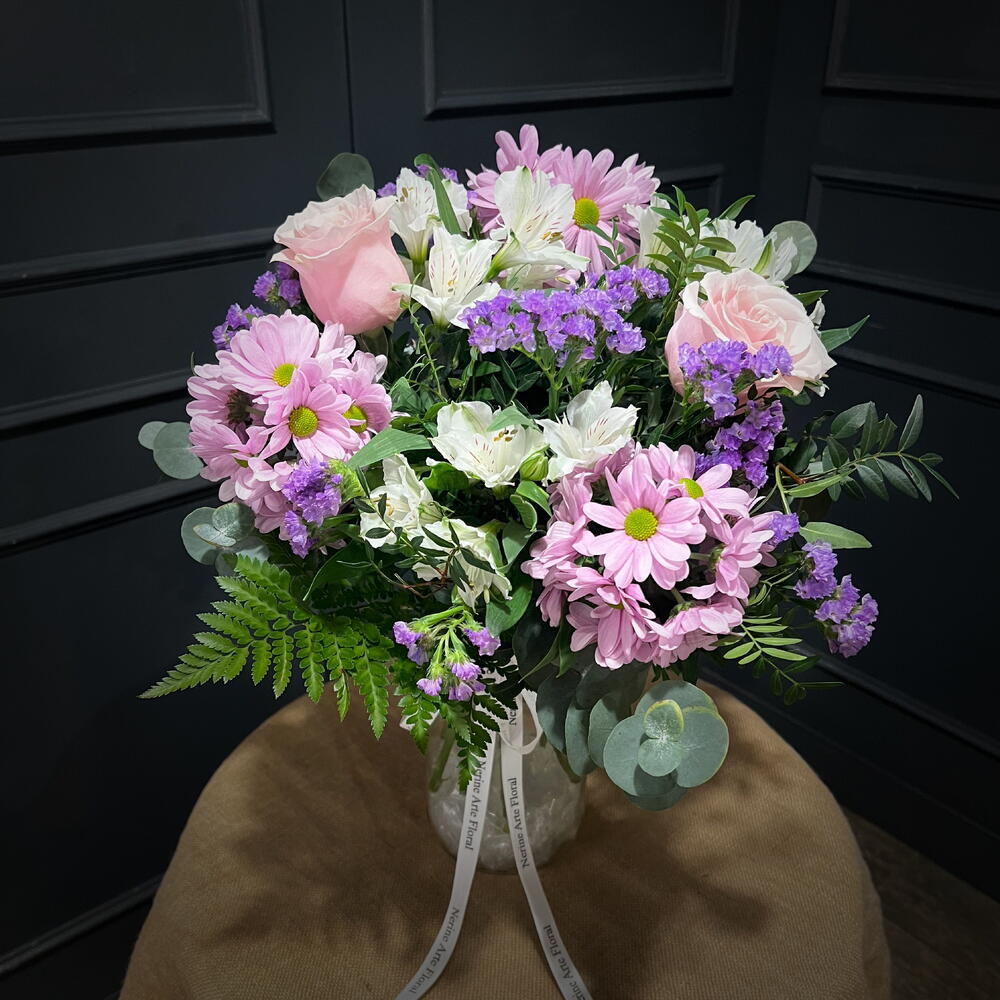 Ilumina el día de alguien especial con el Ramo Campestre Alegría de Nerine Arte Floral. Esta composición combina la frescura y sencillez de las margaritas con el romanticismo de las rosas, la durabilidad de las astromelias y el toque silvestre del statice. Es una mezcla vibrante y versátil, perfecta para cualquier ocasión: desde un «feliz cumpleaños» hasta un «recupérate pronto» o simplemente para dar vida a un rincón de tu hogar.